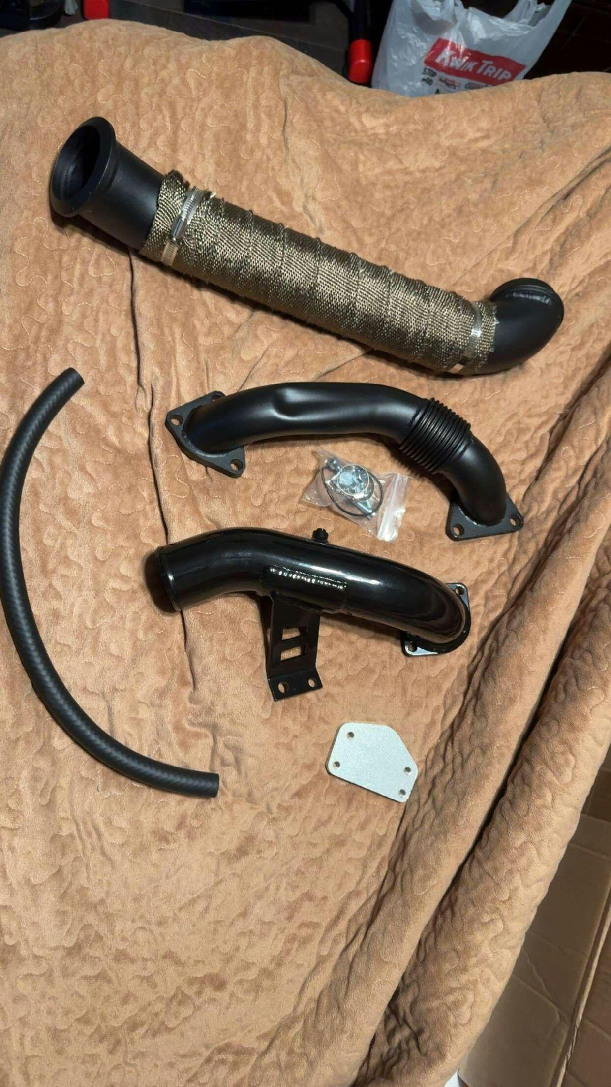 Up-pipe is a piping that connects the exhaust manifold with the turbo. Exhaust gases enter the turbo from the up-pipe. Down-pipe is a piping that connects the turbo with the rest of the exhaust pipe. Exhaust gases leave the turbo from the down-pipe. For those looking to enhance their Duramax's performance, consider our LML delete kit and Duramax delete kit for optimal results.